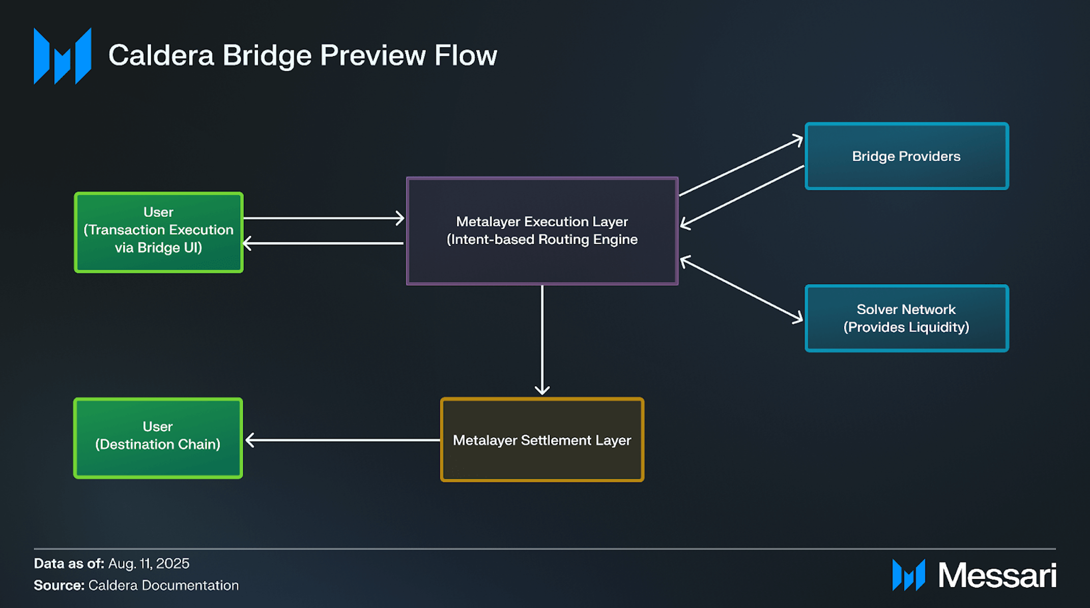 The Caldera Bridge operates as an execution-layer application on top of the Metalayer: