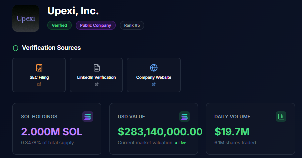 Despite a recent drop in Solana’s price, from around $143 to $134, Upexi’s on-chain reserves remain among the largest institutional holdings in the ecosystem.